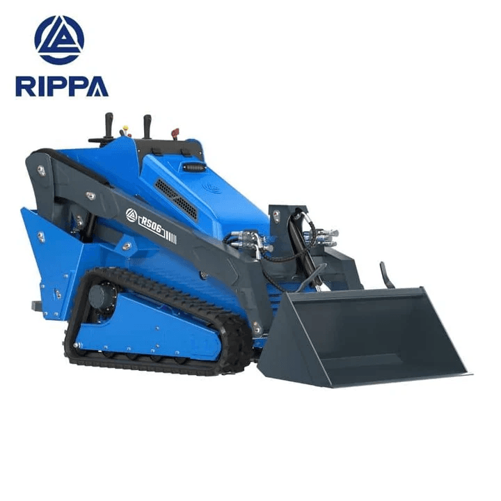 The RIPPA RS06 Skid Steer Loader is a compact, high-power tracked loader driven by the Kubota D1105 diesel engine (24.4 HP (18.2 kW)). It features dual-speed travel, a load-sensing hydraulic system, and quick-change attachments for fast, precise work in tight job sites. Its small frame and 360° maneuverability make it ideal for landscaping, construction, and agricultural applications where space and precision matter. RS06 skid steer loader is your best choice to improve work efficiency and flexibly respond to various engineering needs, making it your right-hand assistant in construction work!